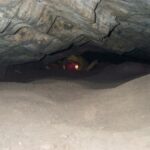 - Photo B – galerie avant le P12. Sa forme trapézoïdale est typique des galeries creusées dans un joint subhorizontal