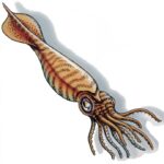 Plus on s’enfonce dans la grotte et plus on remonte le temps. Aux calcaires oolithiques précèdent des passages marneux (calcaire + argile) reconnaissables à leur couleur plus sombre et à la dissolution plus difficile : les strates dépassent en paroi. Par alternance, on observe également des niveaux constitués de petits morceaux de coquillages. Ce sont les lumachelles à petites huîtres, des comblements d’anciens récifs et canaux par des débris de coquillages (les huîtres). Imaginez les Bahamas actuelles, vous aurez un aperçu de l’Ain il y a 160 millions d’années ! On les repère très bien car le grain est très grossier. A l’intérieur de ces strates, on observe de magnifiques fossiles. Nous en citerons deux : les bélemnites et les crinoïdes. Les premiers sont des animaux marins qui ressemblent à nos seiches actuelles. Leur fossile est le rostre, partie dure de l’organisme en forme de balle de fusil. On en trouve des sections et parfois des morceaux entiers sur les parois du Crochet. Les seconds, les crinoïdes, sont des animaux ressemblant à des algues sous-marines. On retrouve le plus souvent des morceaux de leur tige – les articles – qui peuvent avoir des formes très variées. Les plus beaux sont en forme d’étoile à 5 branches. Au Crochet, le courant marin devait être important car on rencontre très rarement plusieurs articles encore alignés : ils ont été dispersés à la mort de l’animal.