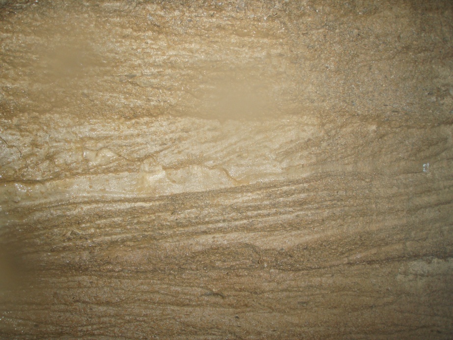 - Photo D – stratification entrecroisée (ou oblique) en paroi. Des anciennes dunes hydrauliques…